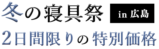 2日間だけのスペシャルプライスでご提供いたします。定番の人気商品はもちろん、メーカーイチ押しの大特価品も多数ご用意しております。価格高騰中の羽毛ふとんをはじめ、普段はお値引きのない商品もお買い得のチャンス!